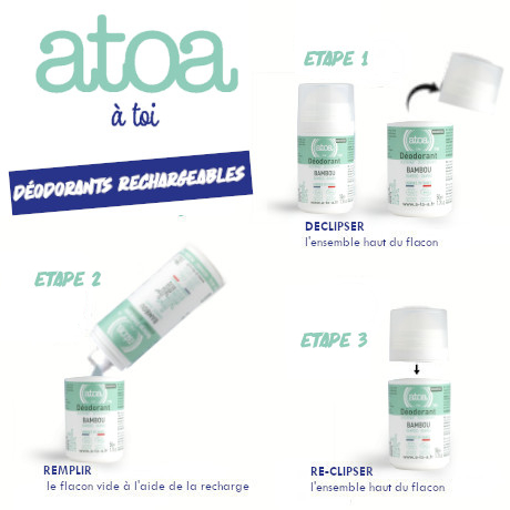 Les déodorants Atoa assurent une régulation naturelle de la transpiration, afin de ne pas bloquer ce processus naturel, indispensable au bon fonctionnement de votre corps.